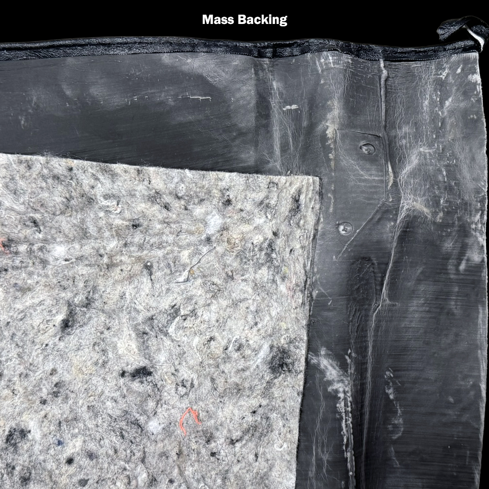 Mass Backing is going to cover the whole entire carpet and is formed and molded to the carpet. The mass backing is 1/2 inch thick sound deadener insulation. (We recommend)