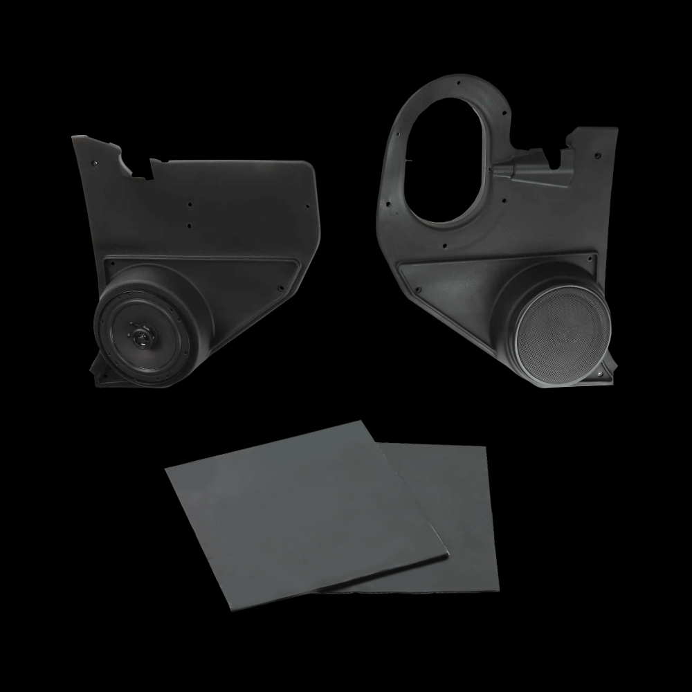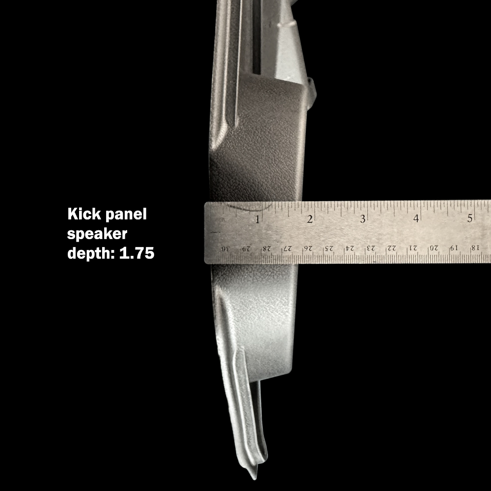 The included 6.5-inch stereo speakers feature a ceramic magnet for high power handling, treated foam surrounds for durability, and Mylar® tweeters for crisp, clear highs. A dip-cut magnet design reduces distortion for clean, balanced audio, while the shallow 1.43-inch mounting depth ensures a seamless installation in your classic C10, Chevy, or GMC interior. Complete with speaker grills, these kick panels provide a perfect combination of factory-accurate style and modern sound performance.