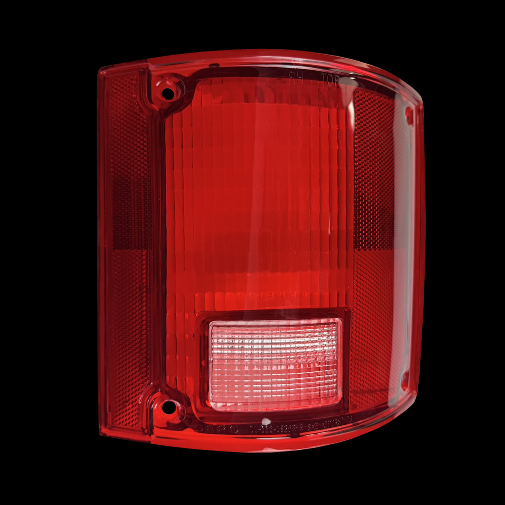 This red tail light lens comes with the clear backup lens included and fits all fleetside pickups as well as 1973-91 Blazers, Jimmys & Suburban models without chrome trim around the lens.