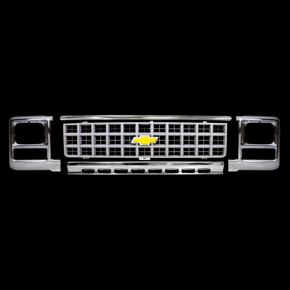 Product Description Specifications This Grille Kit is everything you need for your 1973-84 Chevy grille restoration!! The kit includes: Grille, Grille emblem, Grille moldings, Headlight bezels, and attaching hardware. Silver finish. Year Range: 1980