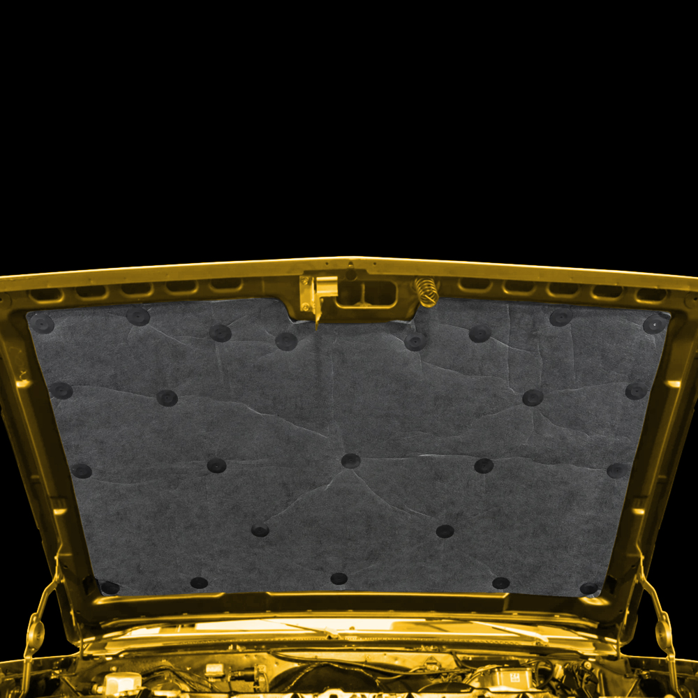 The kit includes all the push pins and retainers needed to mount the insulation securely to the hood. For correct installation, the black facing side installs toward the engine compartment.