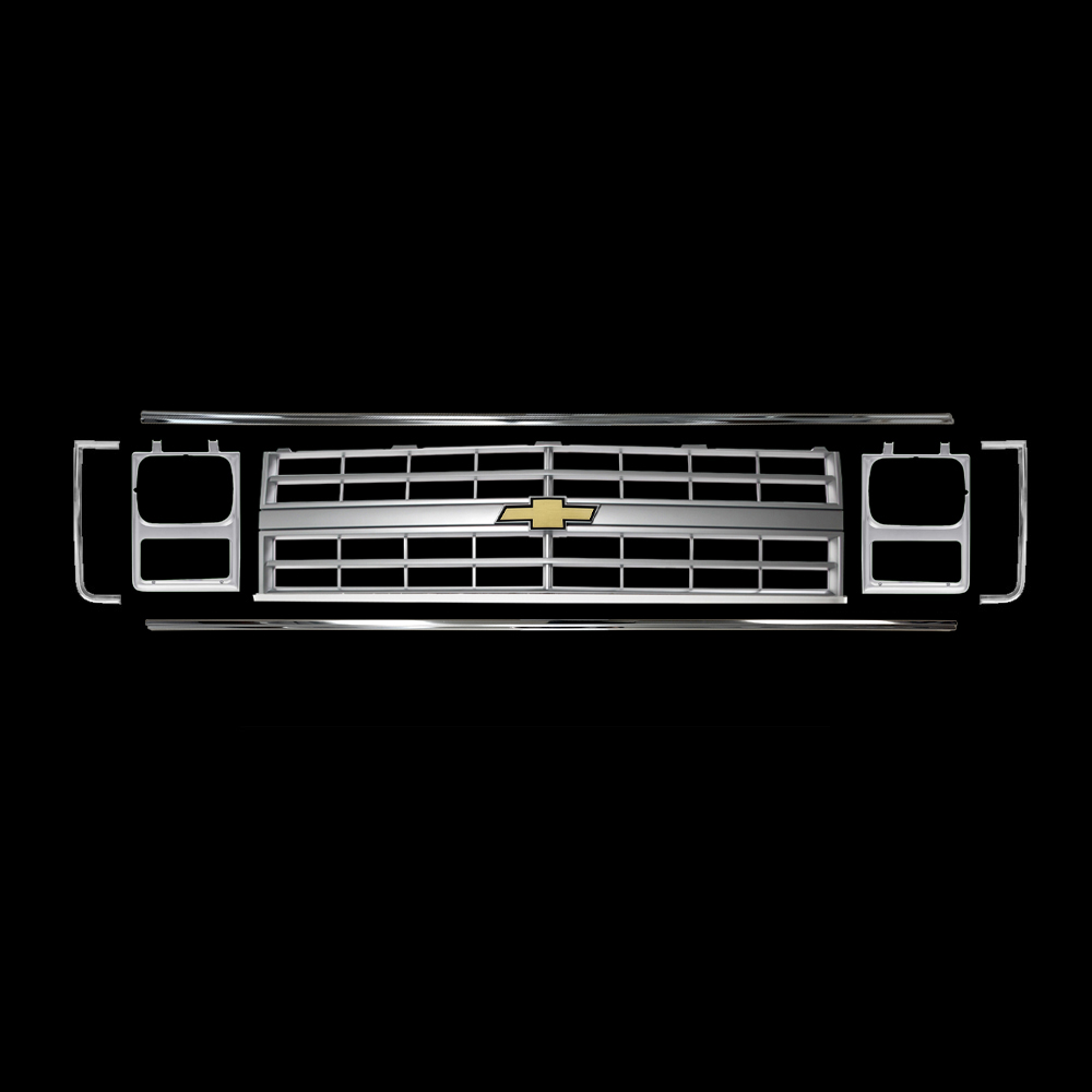 Comes with Grille, Headlight bezels, upper and lower grill molding, driver and passenger side grille molding, connection clips, Grille Bowtie Emblem, and grill attaching hardware.
